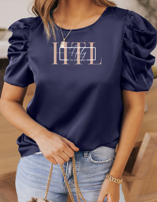 Navy Blue Ruched Satin Blouse