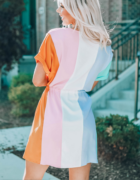 Multicolor Easter Sunday Dress with Tie Waist